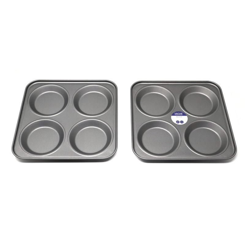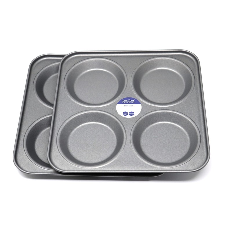 Lets Cook Cookware 4 Cup Yorkshire Pudding Tray Twin Pack, British Made with Teflon Non Stick