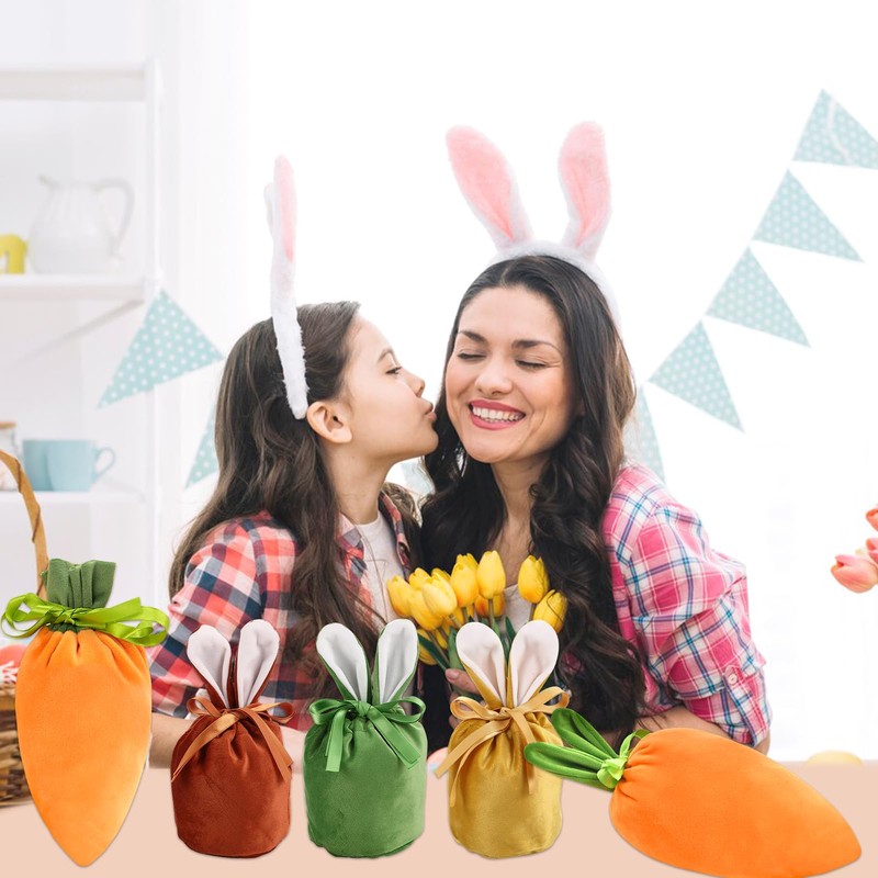 Lets Joy Pack of 5 Easter Bags for Filling, Easter Carrot Bag, Easter Velvet Bag, Easter Bunny Bags, Rabbit Ears Bags, Carrot Bags, Easter Decorations, Easter Gift Bag