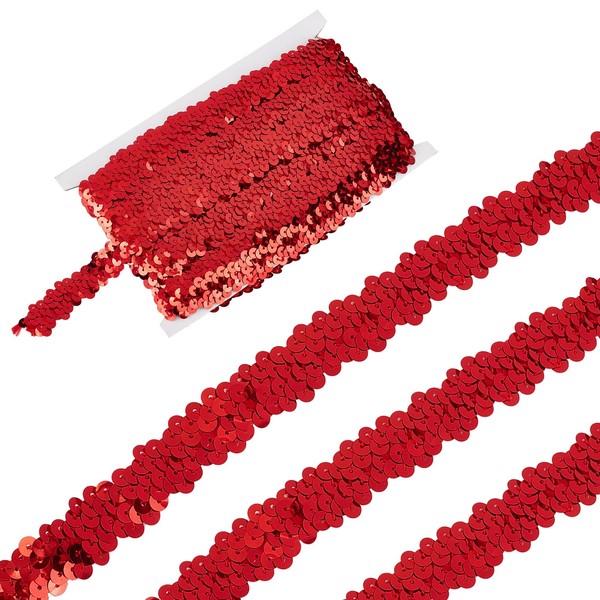 letsinstyle 10 Yards Elastic Sequin Ribbon Trims, Red Sequin Sewing Trim, Flat Glitter Stretch Fabric Bling Trimmings for DIY Craft and Sewing Wedding Bridal Dress Embellish
