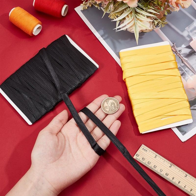 letsinstyle 2 Pcs 10 Yards Black Yellow Satin Bia Tapes, Double Fold Binding Bias Ribbon, Polyester Fabric Trimmings for Cheongsam Decoration and Clothing Seaming Piping