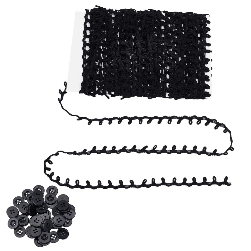 - A COMPLETE SET: This kit includes black buttonhole trim and 50 resin sewing buttons. With the combination of loops and buttons, this set helps you create beautiful and elegant arts and crafts, suitable for enhancing clothes and other sewing projects