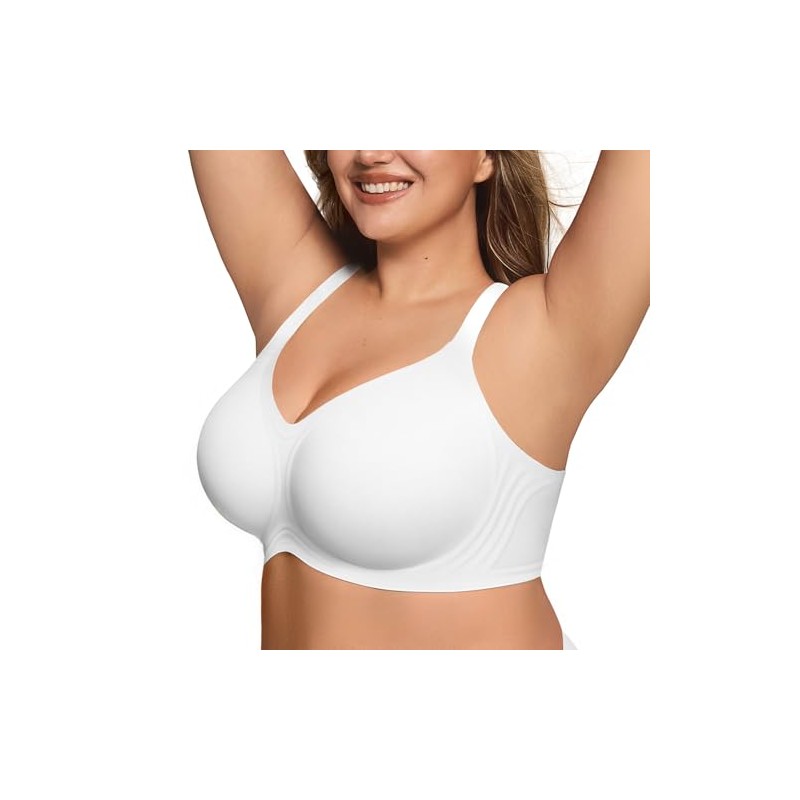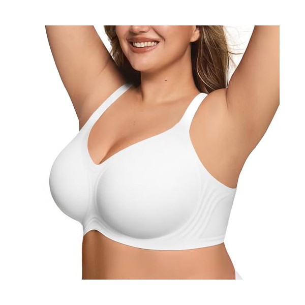 LetsJoli Wireless Bra Full Coverage Seamless Support Push Up Bras for Women No Underwire Comfort V Neck Everyday Bralettes (White,XL-Plus)