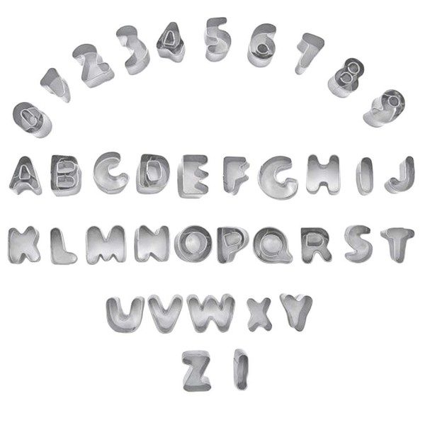 Letter and Number Fondant Cookie Fruit Cutters Set Metal Mini 26 Capital Letters and 0-9 Numbers 36pcs Tools for Cookie Stainless Steel Mold