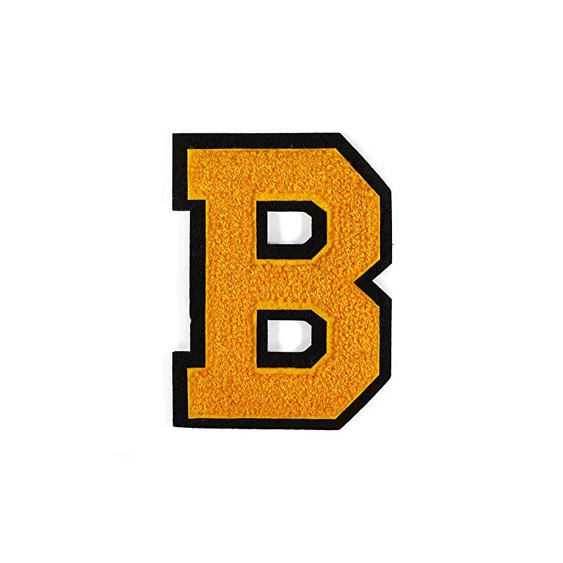 Letter B - Chenille Stitch Varsity Iron-On Alphabet Patch by pc, 4-1/2", TR-11648 (Golden Yellow/Black)