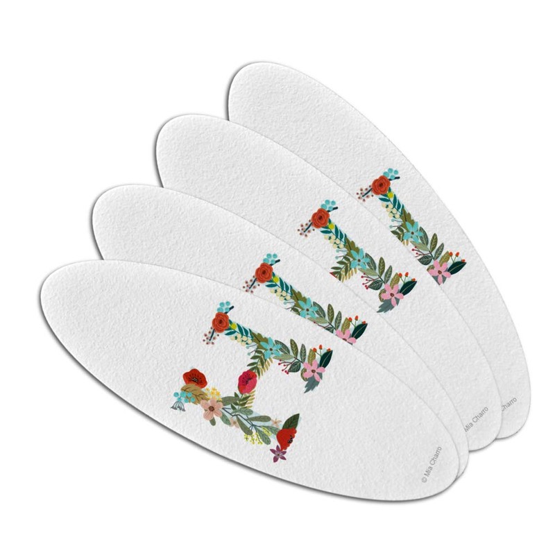 Letter H Floral Monogram Initial Double-Sided Oval Nail File Emery Board Set 4 Pack