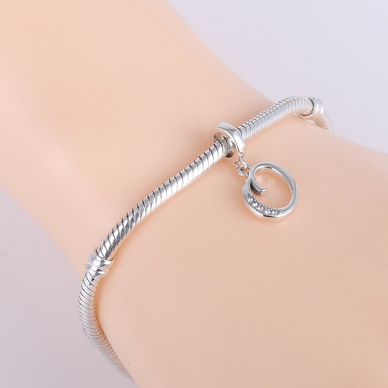 Letter Initial A-z Alphabet Beads Solid 925 Sterling Silver Dangle Crystal Charms European Bracelets (O)
