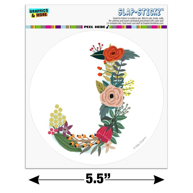 Letter J Floral Monogram Initial Automotive Car Window Locker Circle Bumper Sticker