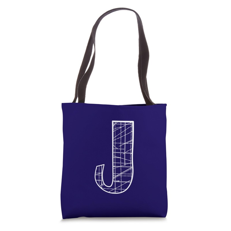 Letter J Navy Blue and White Alphabet Monogram Initial Tote Bag