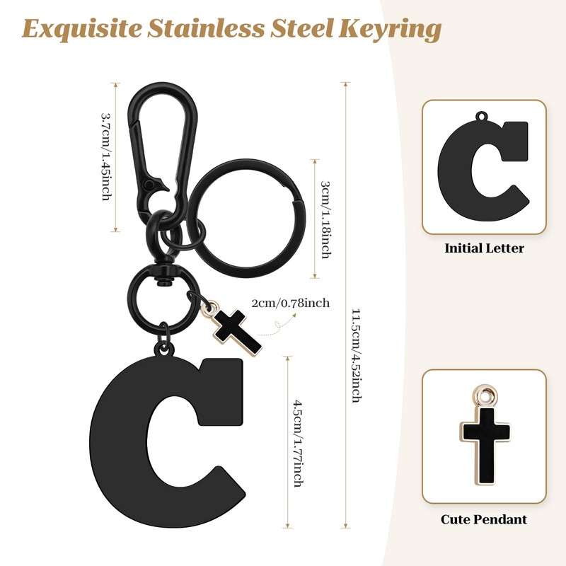 - Alphabet Keychain Material & Size - This initial keychain with lovely pendants are made of high-quality alloy material, it is lead free and nickel free, hypoallergenic, not easy to rust, not easy to distortion, not easy to fracture, not easy to fade, making it a reliable choice for securing your keys or other small belongings. Size: Length of the letter pendant: 45mm/1.77inch, keyring: 30mm/1.18inch.