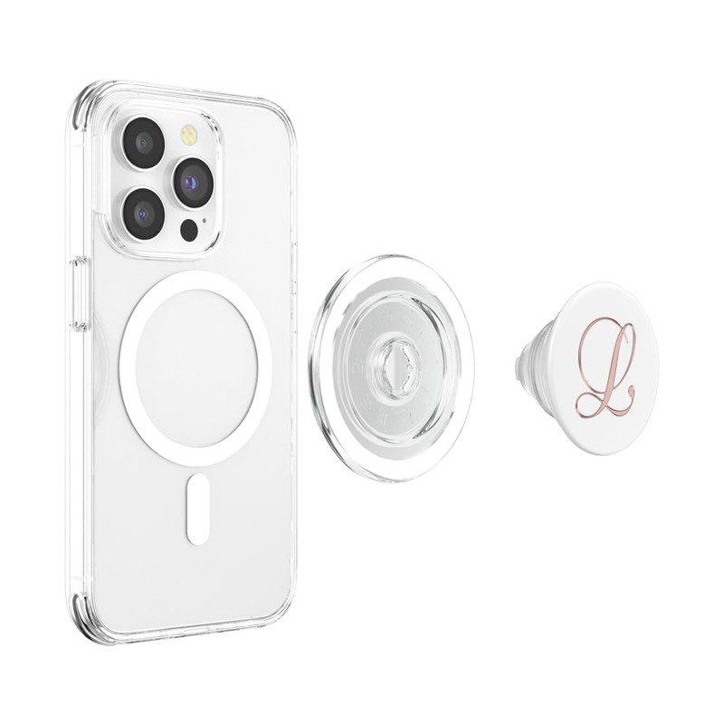 - Letter L golden rose pink. Initial L On White Background. Cool grip and stand for cell phones and smartphone for girls and for boys, for men and for women and for kids.