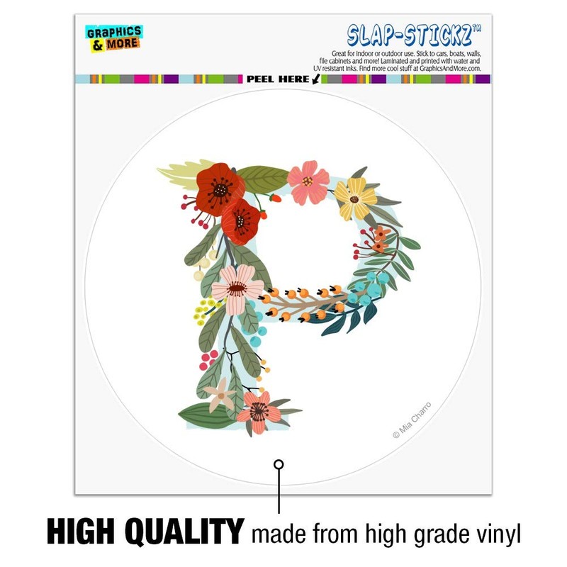 Letter P Floral Monogram Initial Automotive Car Window Locker Circle Bumper Sticker