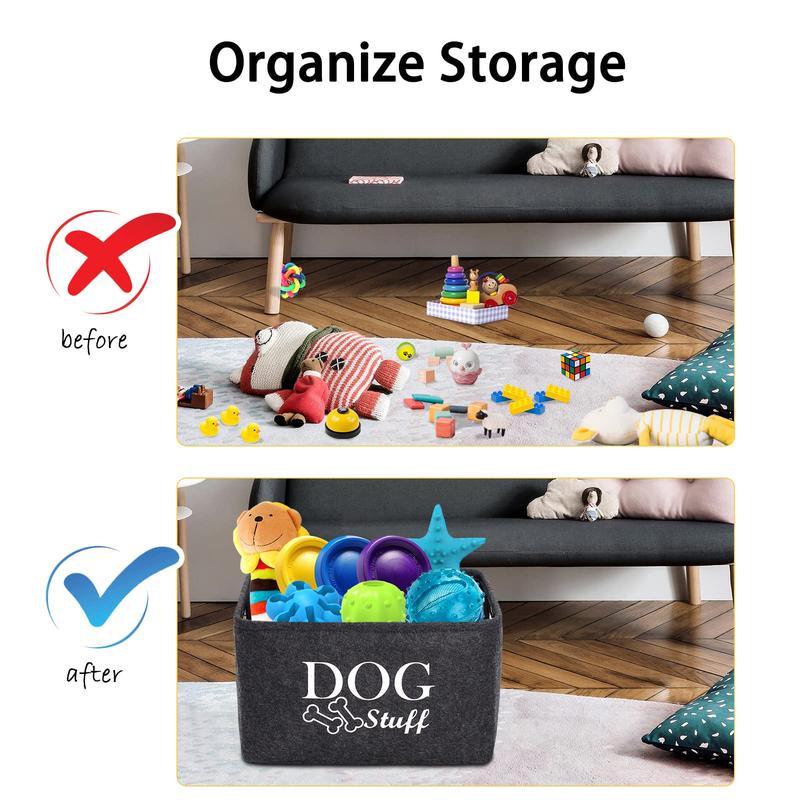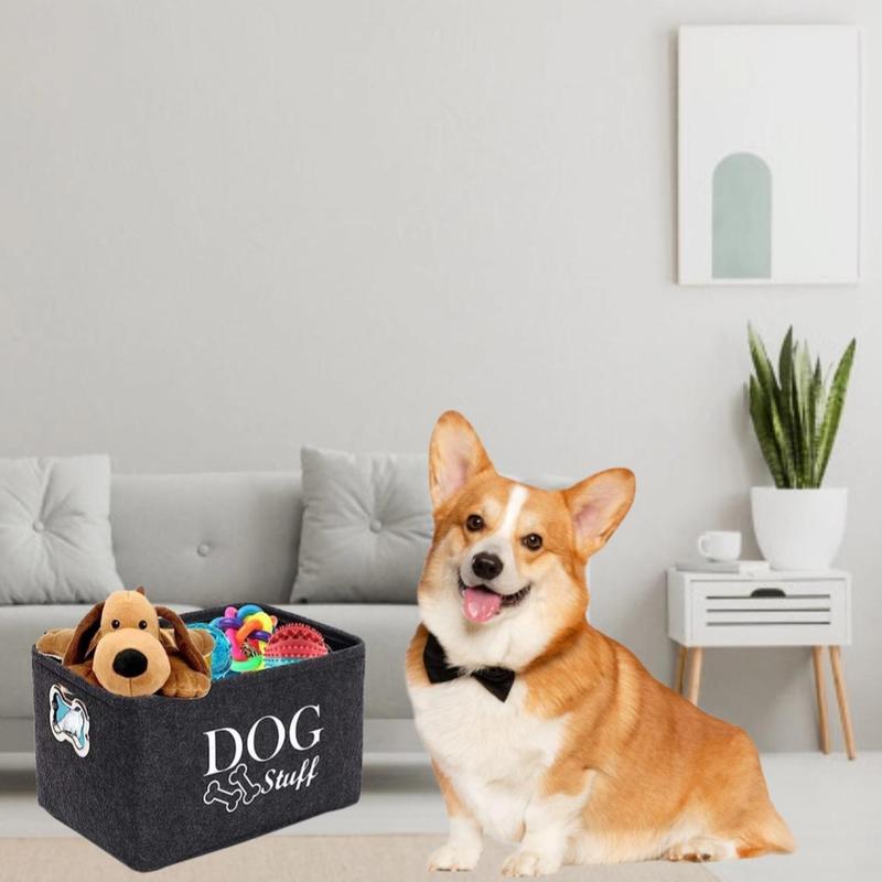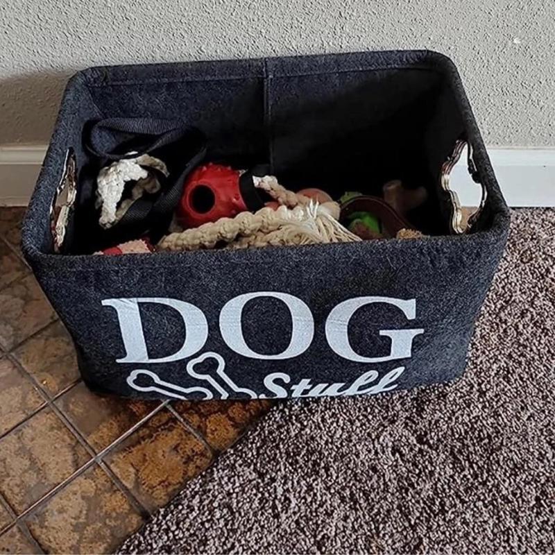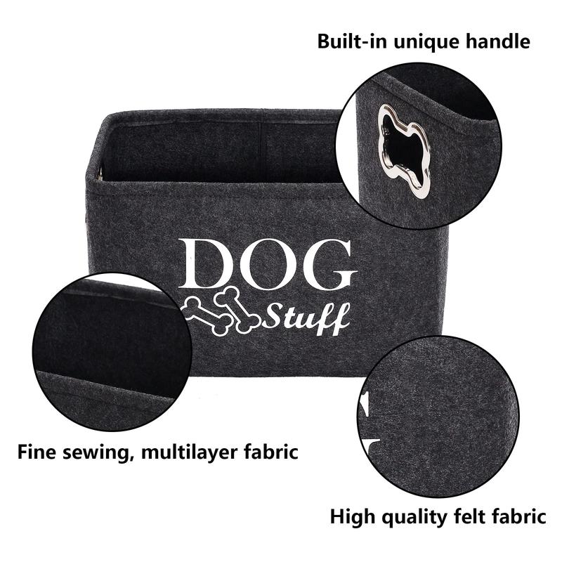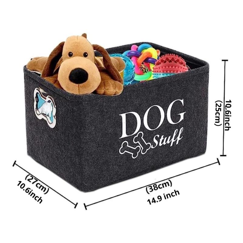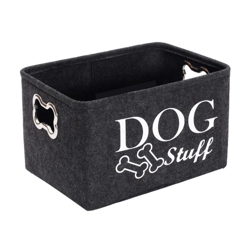 Letter Pattern Dog Toy Storage Box, Felt Pet Toy Storage Basket with Metal Bone Shaped Handle, Collapsible Storage Basket for Pet Toy & Accessories