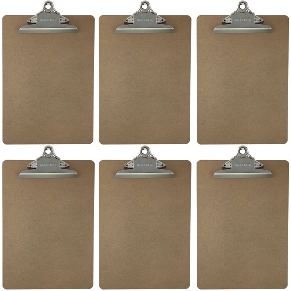 Letter Size Clipboard Standard Clip 9'' x 12.5'' Hardboard (Pack of 6)
