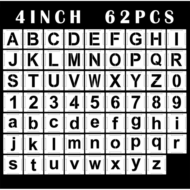 Letter Stencils Interlocking Stencils 4 Inch, 62Pcs Numbers Stencils Reusable Alphabet Stencils Templates for Painting on Wood, Wall, Fabric, Rock, Chalkboard, Signage and DIY Art Projects