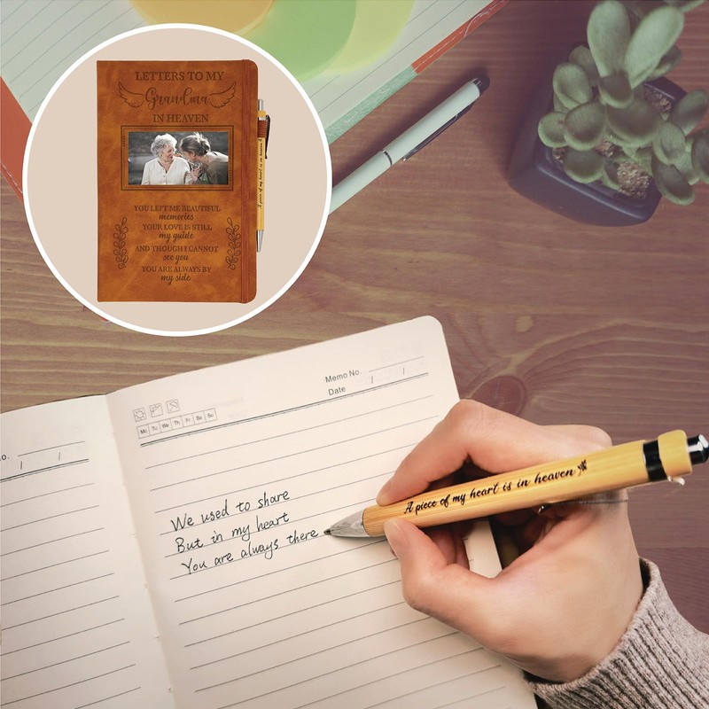 - In loving memory of Grandma journal set combines a crafted wooden pen with a deeply engraved message, “A Piece of Me is in Heaven”. It's a beautiful Grandma remembrance gift - a place where you can pour out your feelings, share cherished memories, and write letters to your Grandma in heaven