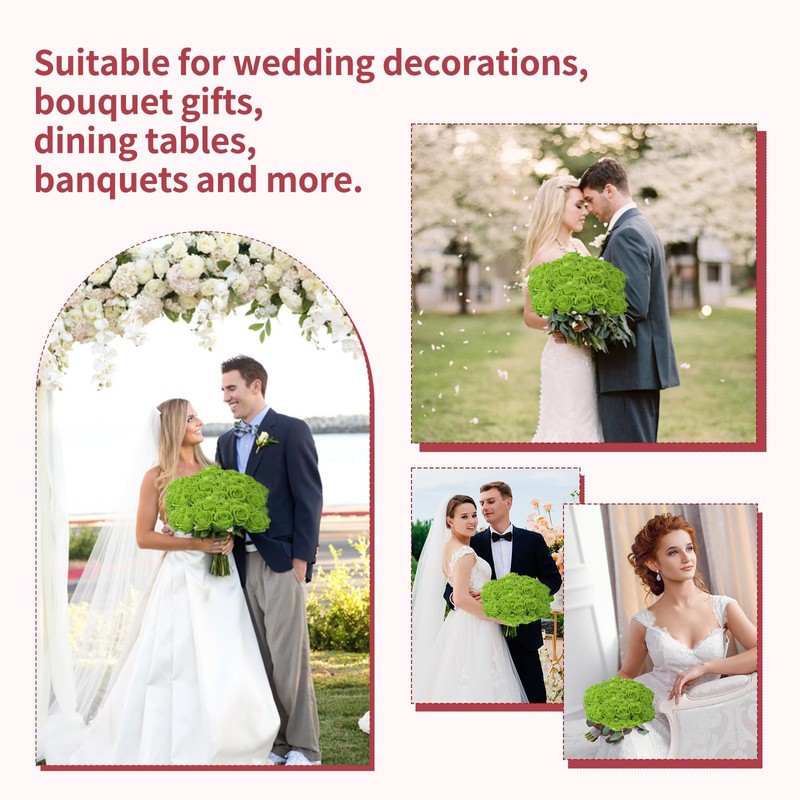 LetuoClips 55 PCS Fake Roses Artificial Flowers Bulk, Green Roses Bridal Bouquet Silk Faux Rose with Stems for Wedding Flowers Decoration, Valentine's Day, Bridal Bouquet, Anniversary,Home Decor (55PCS, Green)