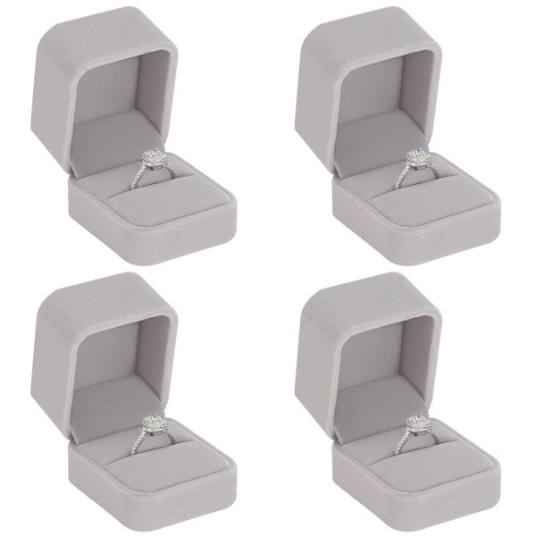 LETURE 4 Pieces Velvet Ring Gift Boxes Set, Earring Pendant Jewelry Case, Jewellry Display Box for Wedding, Engagement,Proposal, Birthday and Anniversary (Grey-4PCS)