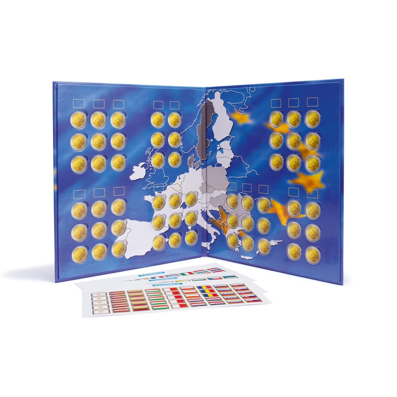 Leuchtturm 302574 Coin Album Presso 2 Euro Special Collection 57 Compartments for 2 Euro Coins Including Flag Sticker Set