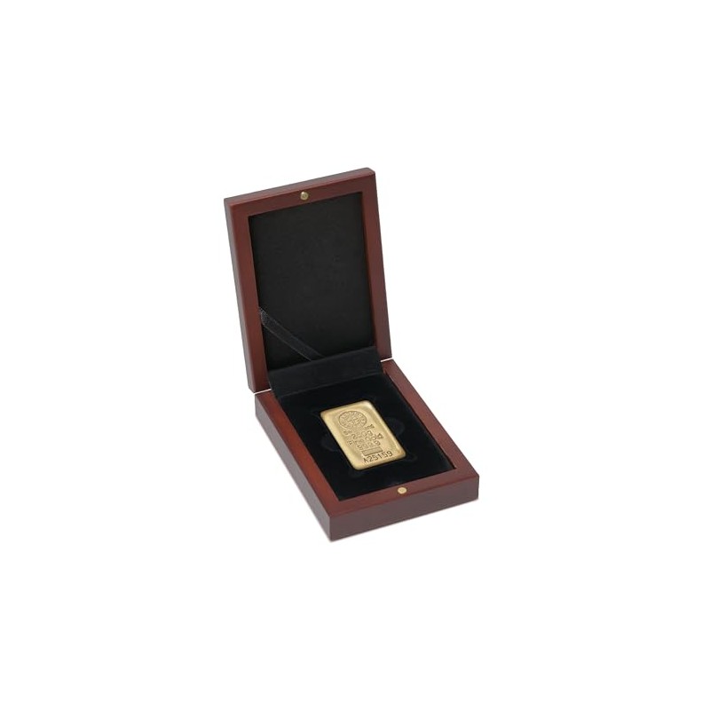 - High quality - With the luxurious coin box, you can store and display gold bars with 250 g in an aesthetic way. A satin ribbon elegantly holds associated certificates