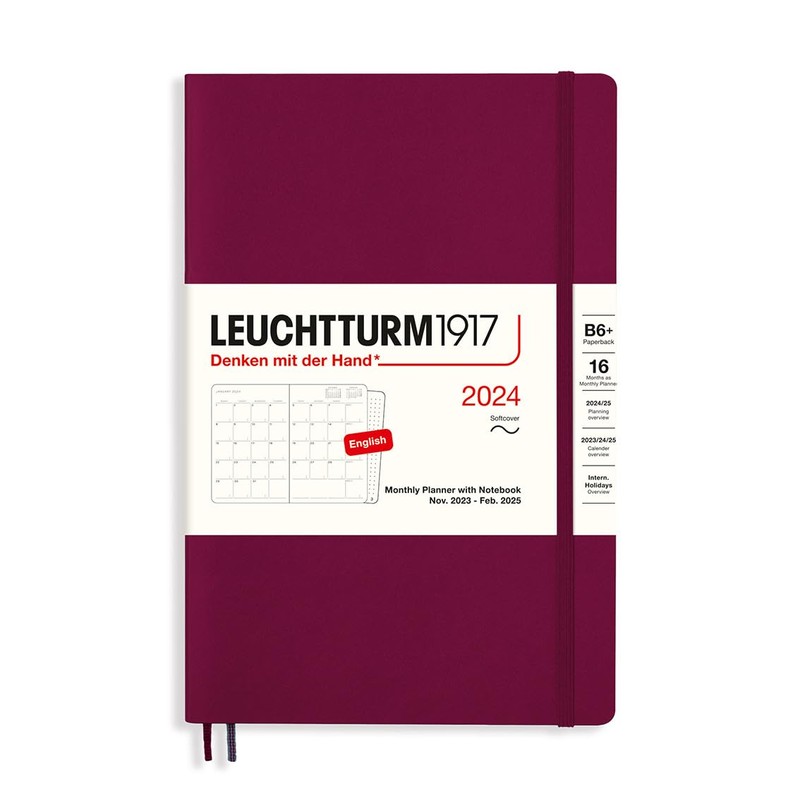LEUCHTTURM1917 367579 Monthly Planner with Notebook, Softcover, Paperback (B6+) 2024, 16 Months, Port Red, English
