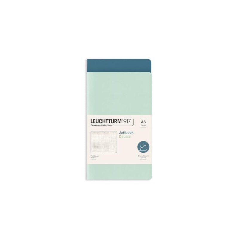 LEUCHTTURM1917 372400 Jottbook A6, 59 Numbered Pages, Twin Pack, Mint Green and Stone Blue, Dotted