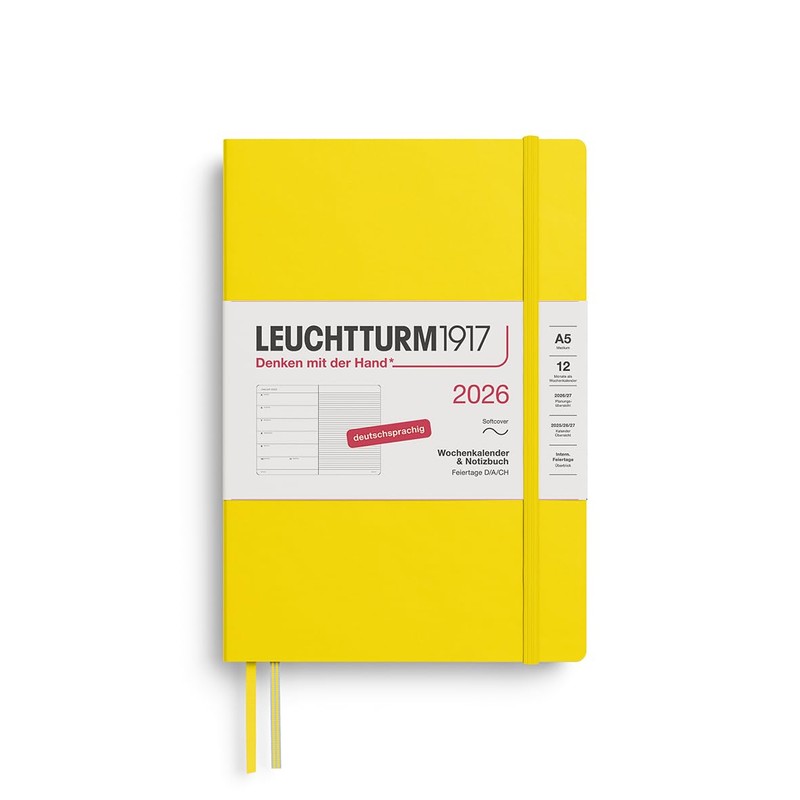 LEUCHTTURM1917 372495 Weekly Calendar & Notebook Medium (A5) 2026, 12 Months, Soft Cover, Lemon, German