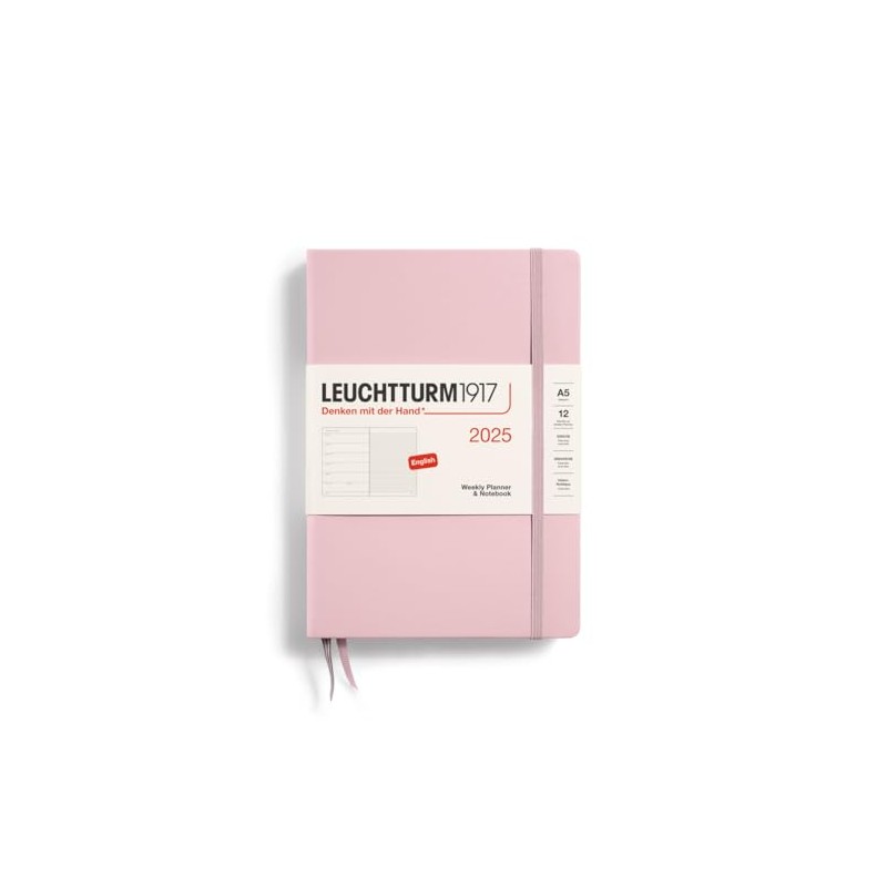 LEUCHTTURM1917 - Weekly Planner & Notebook 2025, Hardcover, Medium (A5), Powder (Jan 1 - Dec 31, 2025)