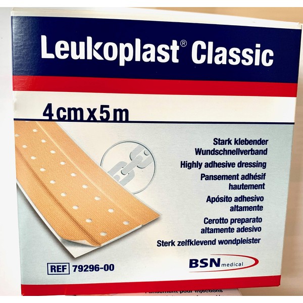 Product information about Leukoplast classic.- Dimensions: 4 cm x 5 m.