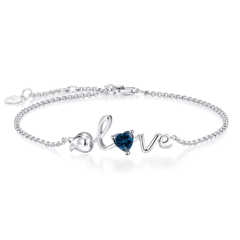 - [Birthstone Bracelets] The dainty link bracelet is designed with Rose and the word LOVE to express your love to her. A heart shape birthstone is well crafted in the pendant, making it a piece of personalized jewelry.