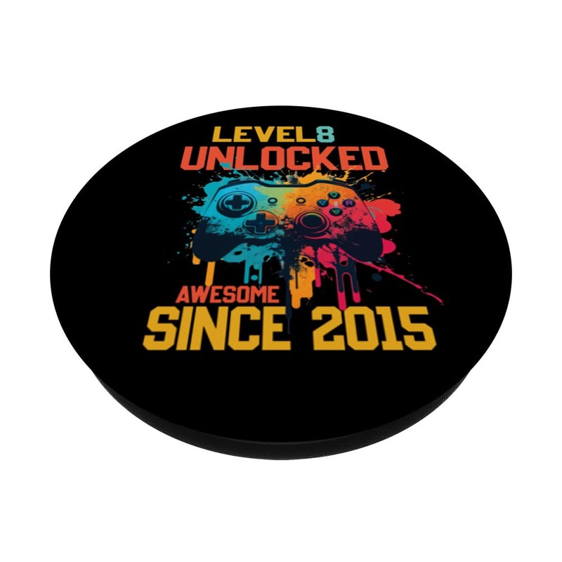 Level 8 Unlocked 8th Birthday 8 Year Old Boy Gamer Bday PopSockets Swappable PopGrip