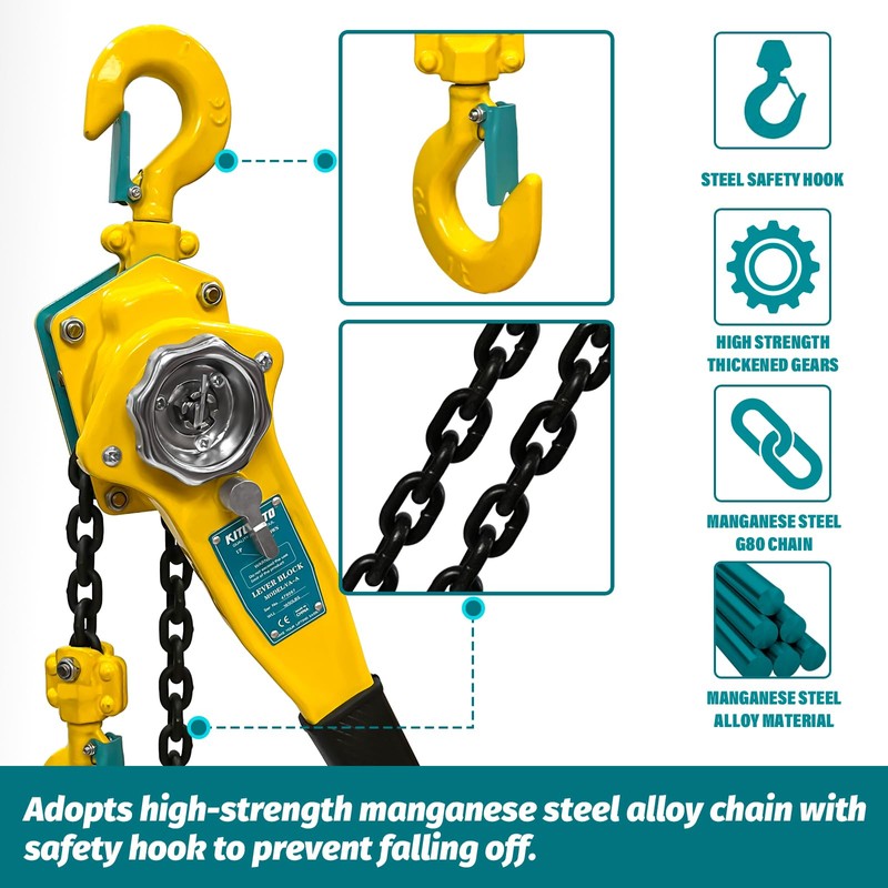- 🔥【HIGH STRENGTH G80 CHAIN】The lever chain hoist adopts a high-quality G80 Manganese steel chain, which has enough tension and strength to load heavy objects and is not easy to deform. And has strong corrosion resistance and wear resistance, to ensure long service life.