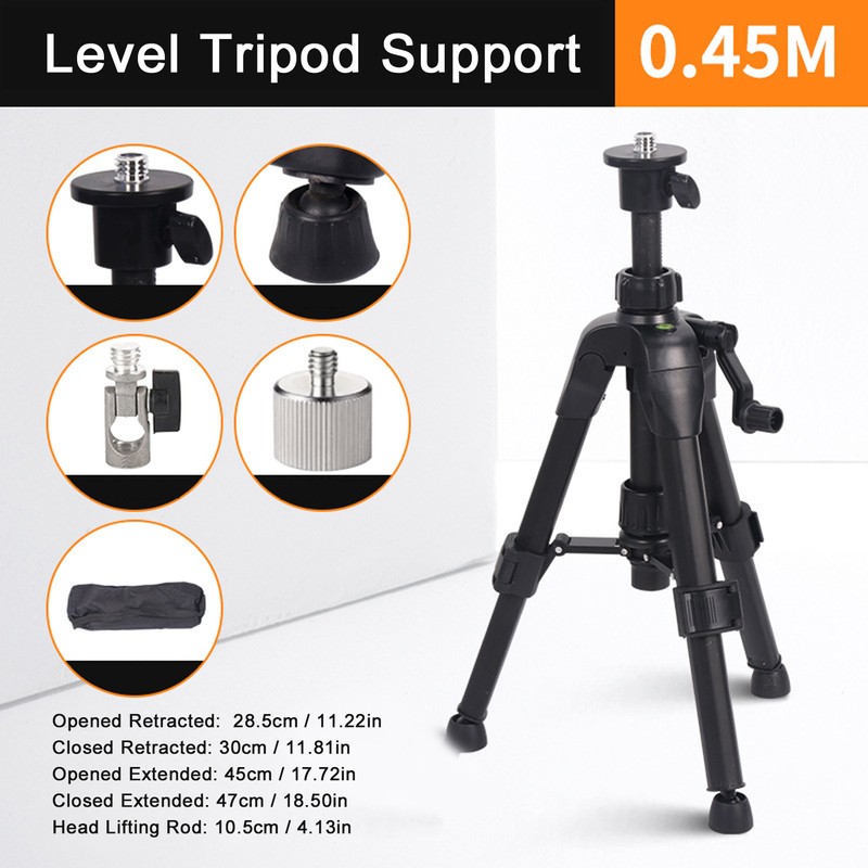 Level Tripod 0.45m Telescopic Thickened Aluminum Alloy Leveling Tripod Stand with 3 Way Stabilizer and Bubble