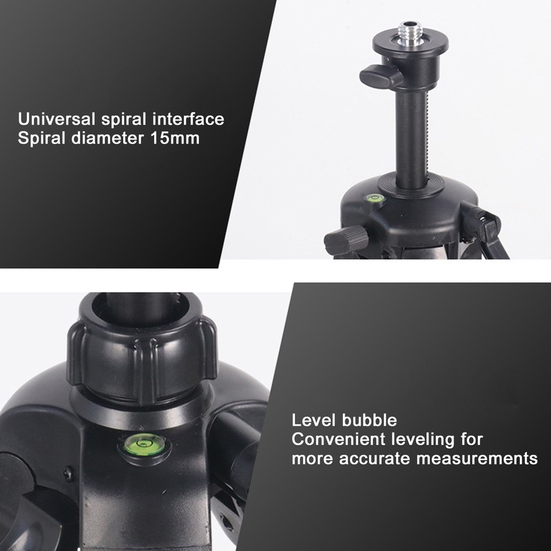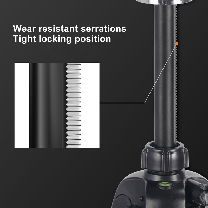 1、[Adjustable Height] Our level tripod allows for three section leg height adjustment and center rod extension, adapt to meet a variety of applications. 2、[Stable Stabilizer] The level tripod stand features a stable three way stabilizer with 360° rotation capabilities for incline and rotation movements, accommodating any desired angle. 3、[Precise Bubble Level] The telescopic level tripod comes with bubble level for convenient leveling, guaranteeing accurate alignment in all your construction tasks. 4、[High Stability] With its robust rubber feet, the level tripod support offers exceptional stability in various terrains, ensuring stable and unwavering performance. 5、[Premium Construction] Made from aluminum alloy material, this leveling tripod is sturdy and built to last, providing durability and reliability for all of your tripod needs.