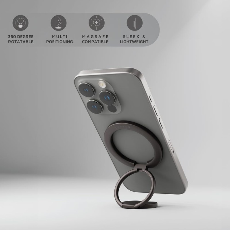 Levelo Orbit Compatible with MagSafe & Magnetic Phone Ring Holder, 360ยฐ Rotation, Multi Positioning, Sleek & Lightweight (Grey)