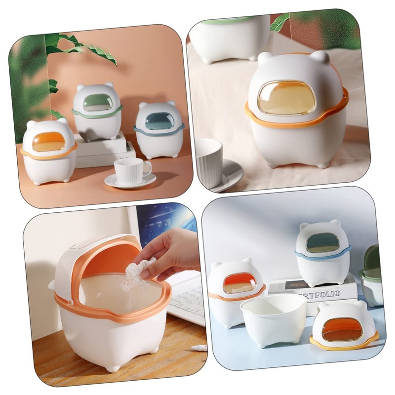 Levemolo Lovely Trash Can with Lid Cartoon for Home Office for Desktop Use Space for Cleanliness and Organization
