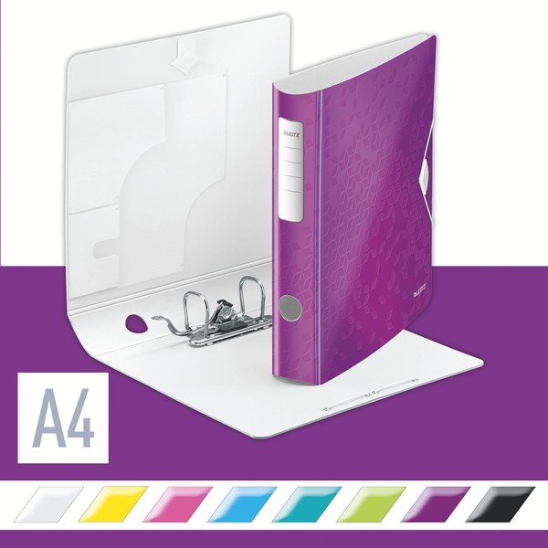 - Contents: 1x Leitz Lever Arch File WOW, Purple 11070062, dimensions: (WxHxD): 65x318x308mm, A4, for 2-Hole Items
