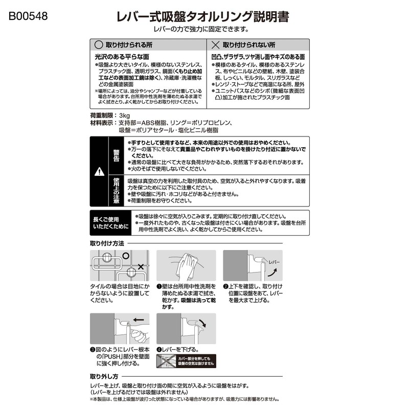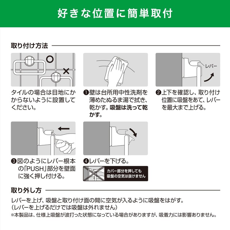 Lever Type, Strong Suction Cup Towel Ring, Gray, Total Length: 7.1 inches (18 cm), Dry Width: 6.3 inches (16 cm), Load Capacity: 6.6 lbs (3 kg)