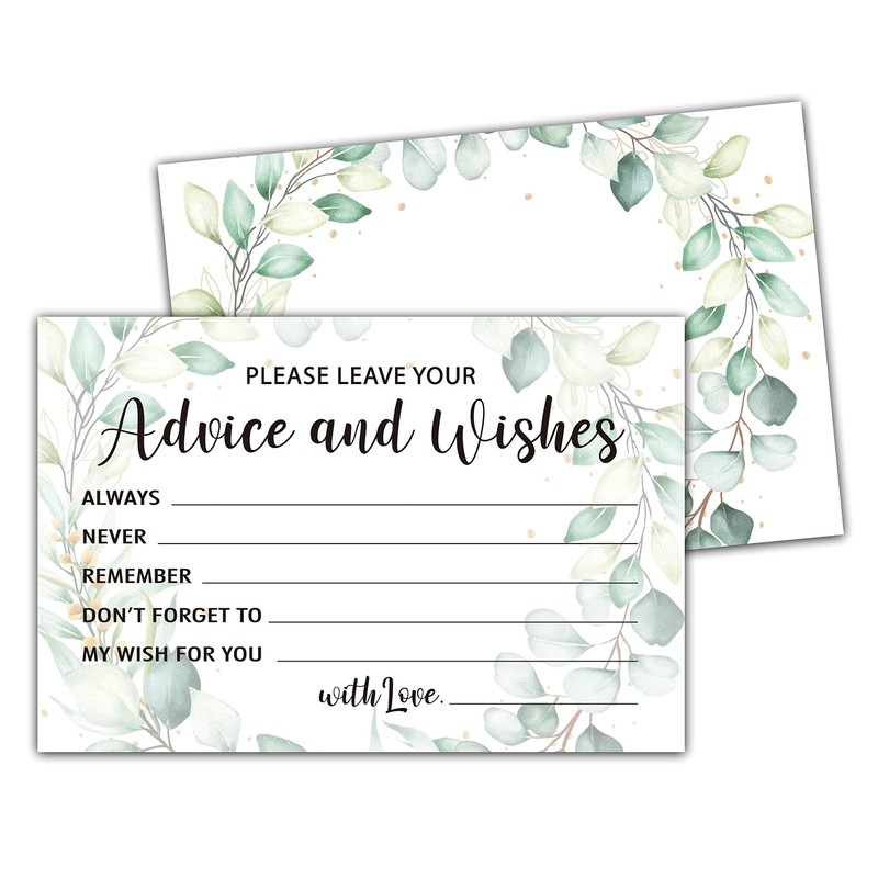 Levitatinyear Greenery Advice and Wishes Cards, 25 Pcs Eucalyptus Double Sided Advice Cards for The Bride and Groom, Mr and Mrs, Bride Shower, Wedding Reception, Engagement Party(02)