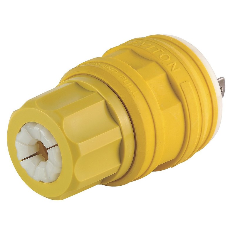 Leviton 26W09 20 Amp, 120/208 Volt- 3PY, Locking Plug, Industrial Grade, Non-Grounding, Wetguard, Yellow