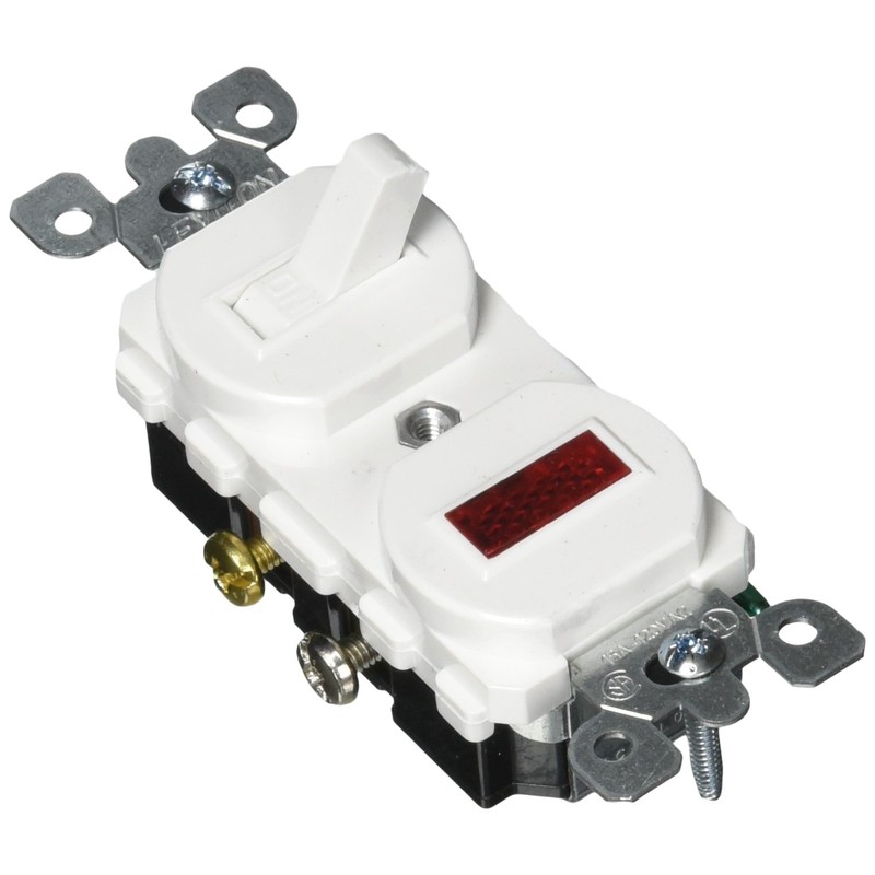 With Leviton's extensive assortment of combination devices, you can fill a one-gang space with two switches, a switch and receptacle, even a switch and GFCI. From sensor guide lights to multi-purpose styles and Tamper-Resistant receptacles, we accommodate your every need. These devices come in a range of colors and are backed by a limited two-year warranty. Built to last and designed to save space, these attractively styled devices are at home in any setting. 15A, 120V, Duplex Style Single-Pole, Neon Pilot AC Combination Switch, Commercial Grade, White.