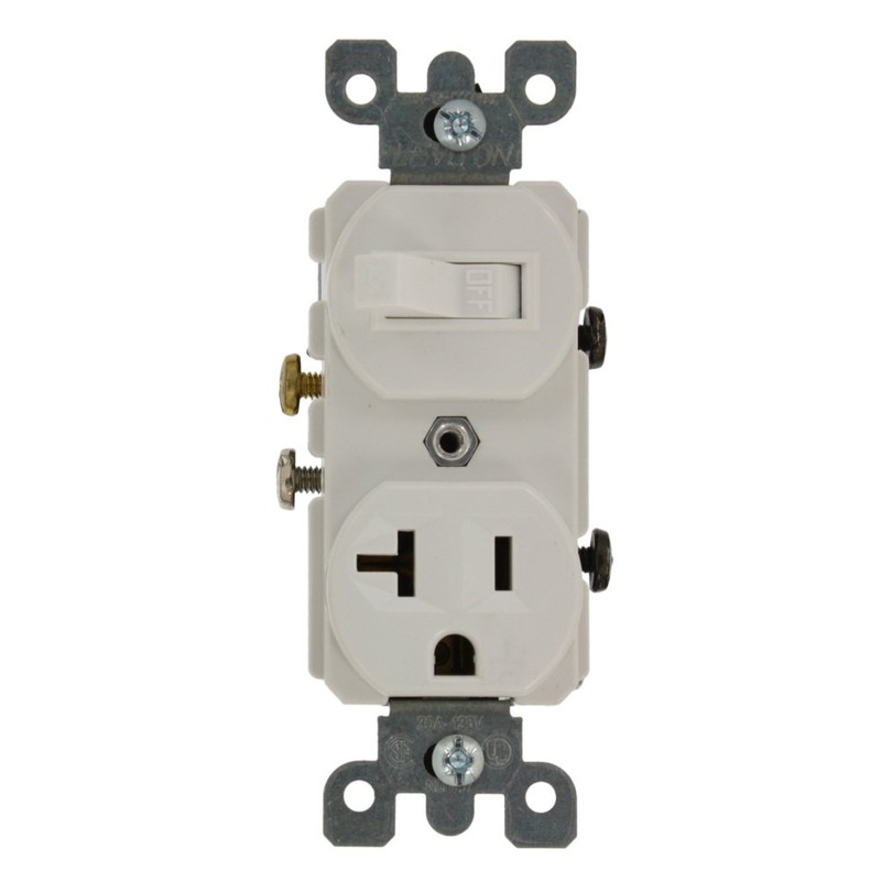 Leviton 5335 20 Amp, 120 Volt, Duplex Style Combination Single Pole Switch/Receptacle, Grounding, White