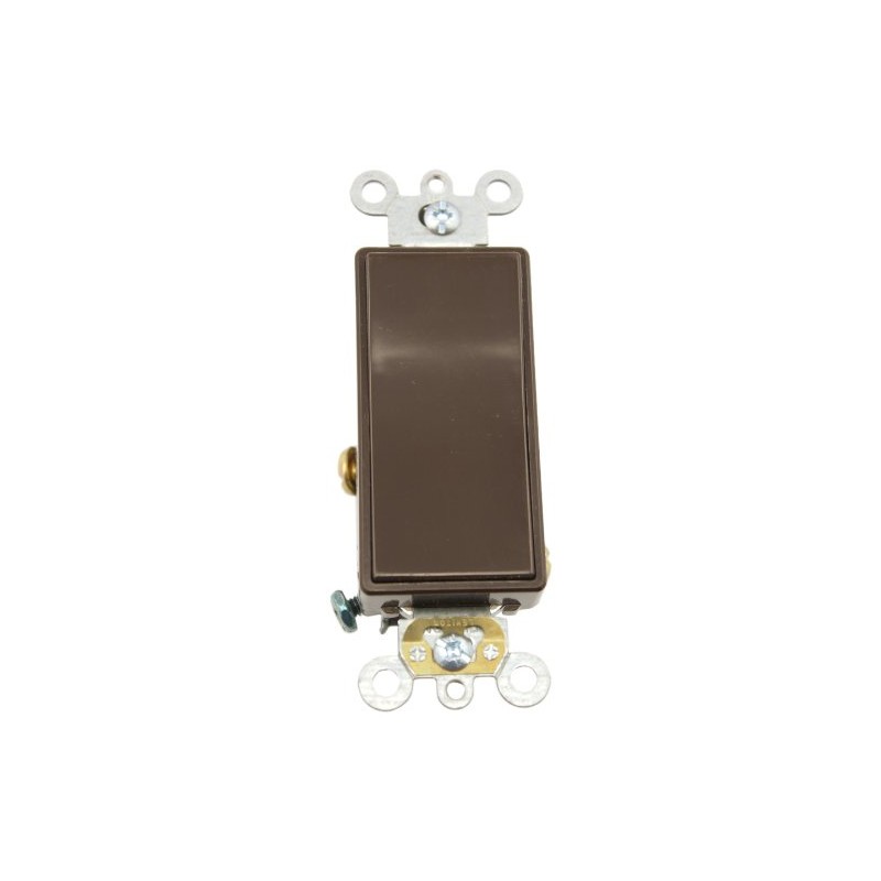 Decora (R) Plus devices combine designer styling with all the benefits of rugged Commercial Grade construction. The robust product offering includes: single pole, double pole, 3 and 4-way switches, momentary and maintained contact switches, as well as pilot light and illuminated switches. 15 Amp, 120/277 Volt, Decora Plus Rocker Single-Pole AC Quiet Switch, Commercial Grade, Brown. Decora is a registered trademark of Leviton Mfg. Co., Inc.