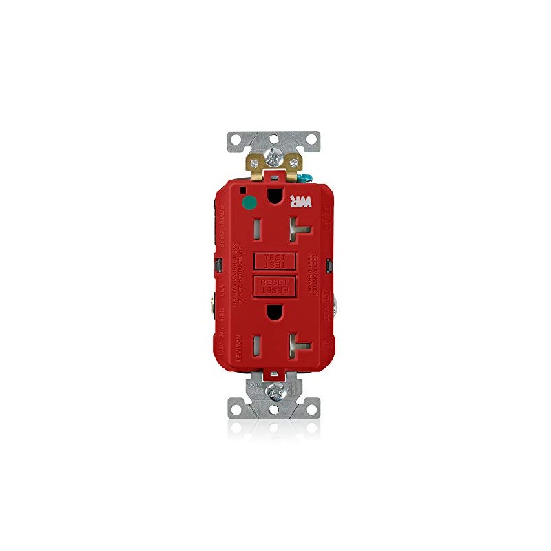 Leviton GFWT2-HGR 20A-125V Extra-Heavy Duty Hospital Grade Tamper/Weather-Resistant Duplex Self-Test GFCI Receptacle, Red, 20-Amp