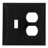 Leviton Combination Wallplates come in a variety of configurations and gangs, and are available in a broad selection of materials including, aluminum, brass, stainless steel and plastic, and in an assortment of colors. If you have a unique application, Leviton can also customize a wallplate for a specific job. 2-Gang 1-Toggle 1-Duplex Device Combination Wallplate, Midway Size, Thermoplastic Nylon, Device Mount, Black.