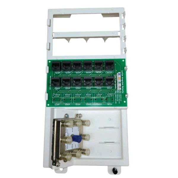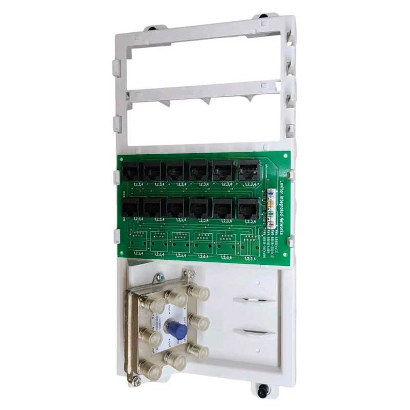 4x12 Telephone Distribution Board on bracket w/ 8-way 2GHz splitter. NOTABLE FEATURES: Leviton’s Pre-configured Structured Cabling Panels combine some of Leviton’s most popular voice, data and radio frequency modules to create an economical, one stop home media distribution point. Some modules are available in expansion styles to fill unused panel slots as shown below. Choose the pre-configured combination that best meets your needs and then enhance it with expansion boards or stand alone modules.