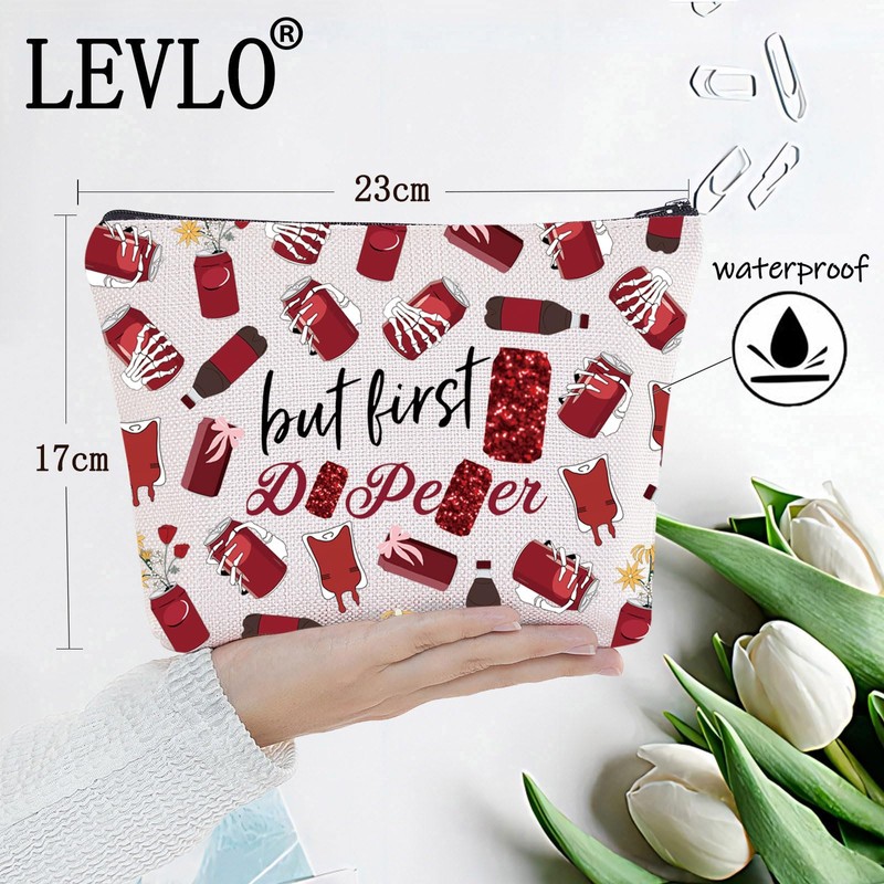 LEVLO Funny Drinks Lover Cosmetic Make Up Bag Drinks Fans Gift But First Drink Makeup Zipper Pouch Bag, But First Full, Cosmetic Bag