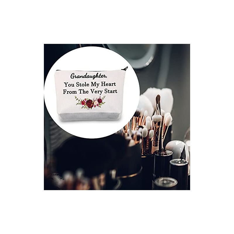 LEVLO Funny Granddaughter Gifts Grandaughter You Stole My Heart From The Very Start Makeup Bags Granddaughter Birthday Gifts (Grandaughter You Stole My Heart)