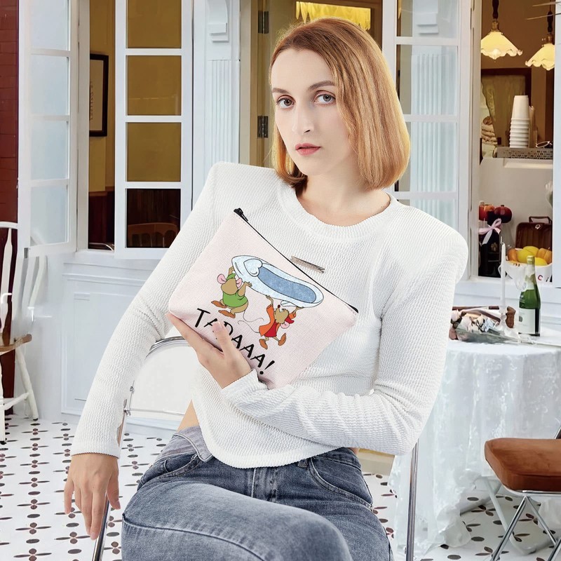 LEVLO Jaq And Gus Cosmetic Bag Gift for Movie Fans Tadaaa Jaq and Gus Makeup ...