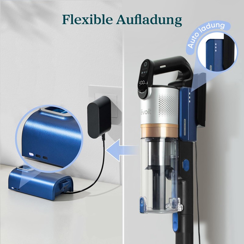 - ???????????????????? ????????????????????????: Laden Sie die Batterie, w?hrend der Staubsauger an der Wandhalterung h?ngt; Oder entfernen Sie die Batterie einfach, um sie getrennt zu laden C so haben Sie mehr Flexibilit?t