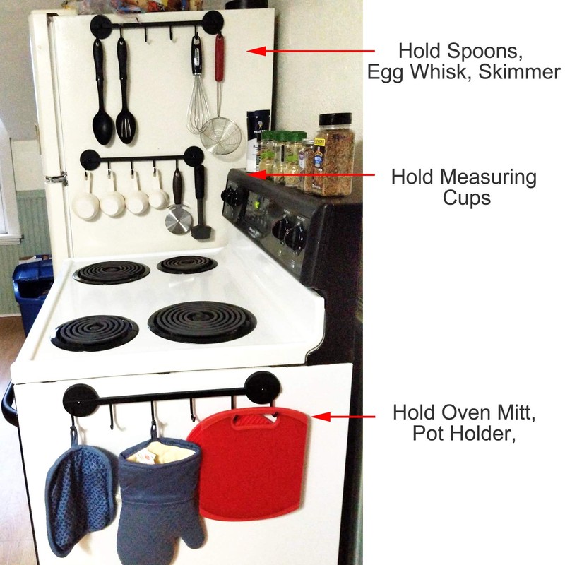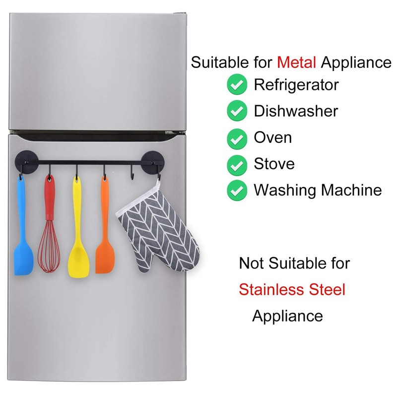- Suitable for any metal appliance like refrigerator, metal cabinet, stove, oven, washing machine, grill. But can't work on stainless steel appliance because they are not magnetic. | Because the utensil holder is covered with rubber, do not attach to high temperature place.